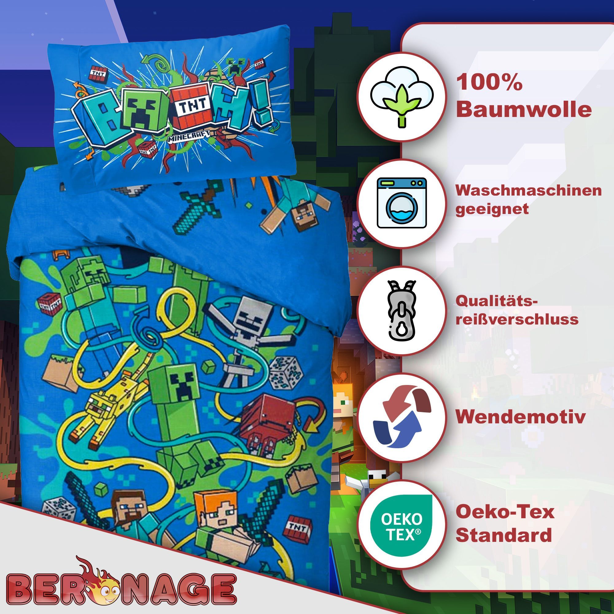 Minecraft Bettwäsche Slurp Blast Biber / Flanell