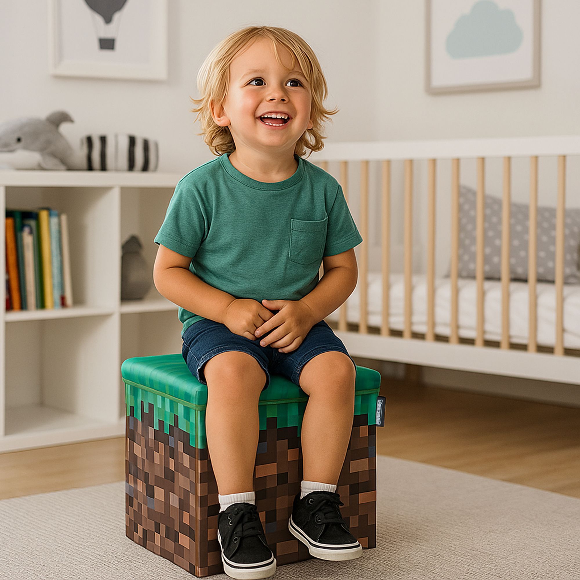 Minecraft - Sitz- und Aufbewahrungsboxen, Sitzhocker mit Stauraum, Grasblock Design