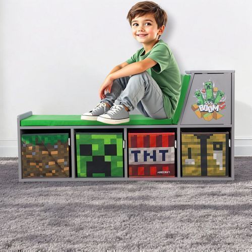 Minecraft - Sitzbank, Leseregal, Bank mit Sitzkissen und Stauraum, Kindermöbel