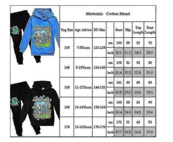 Minecraft Trainingsanzug Set Kinder Jungen Mädchen Kapuzenpullover
