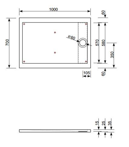 Mineralguss Duschwanne Planline E 100 x 70 cm Duschtasse Duschbecken Ablauf