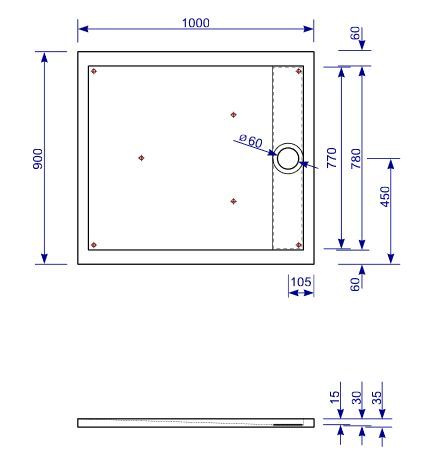 Mineralguss Duschwanne Planline E 100 x 90 cm Duschtasse Duschbecken Ablauf