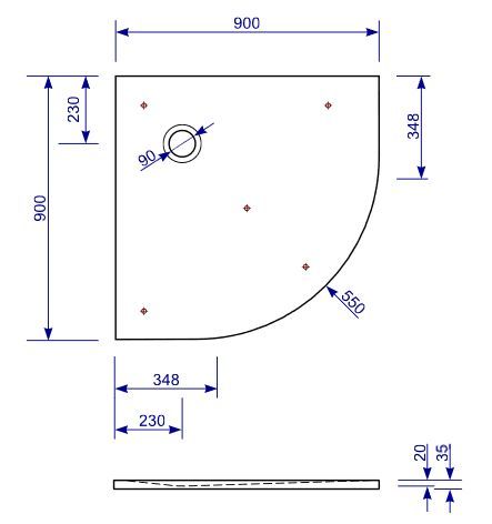 Mineralguss Viertelkreis Duschwanne StoneFlat R55 90 x 90 weiß Viega Tempoplex
