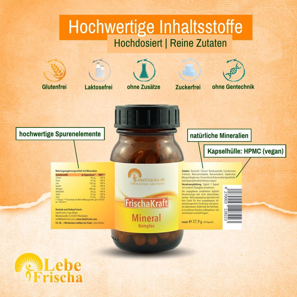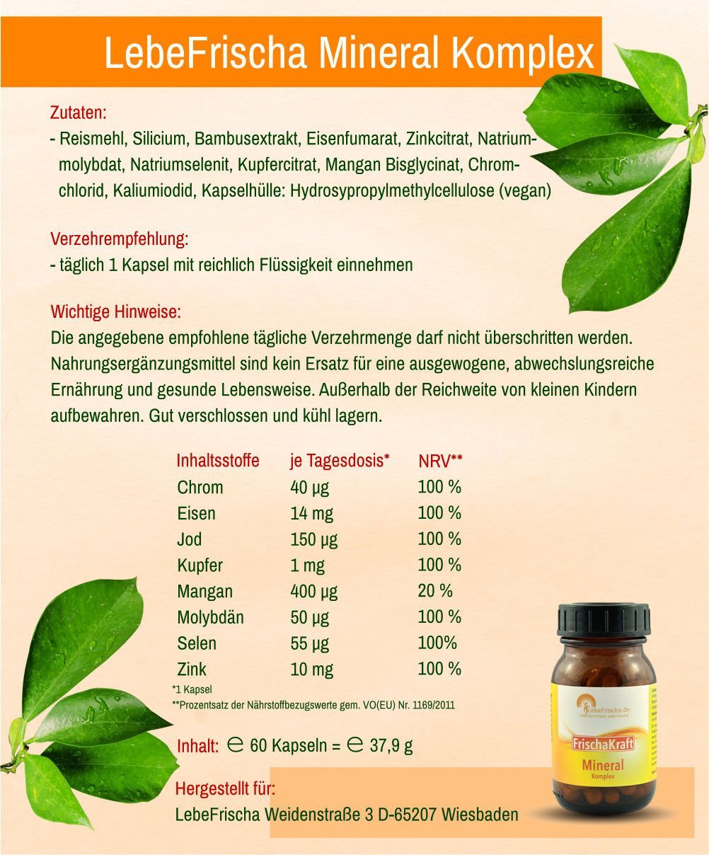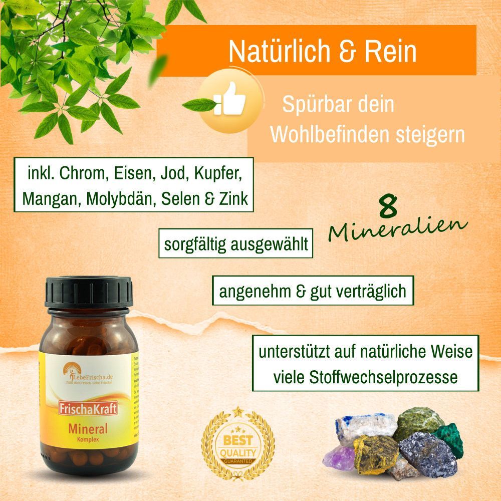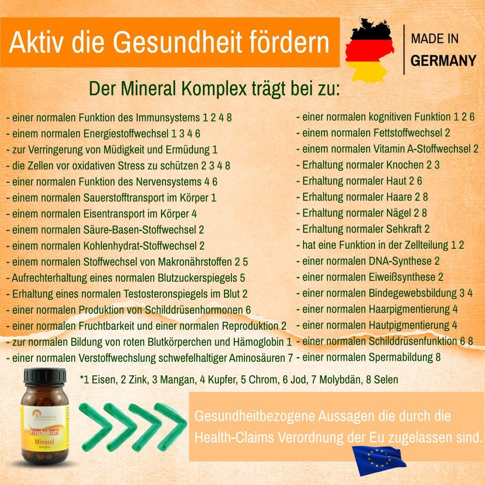 Mineralien Komplex inkl. Chrom Eisen Jod Kupfer Selen Zink für Energie & Immunabwehr