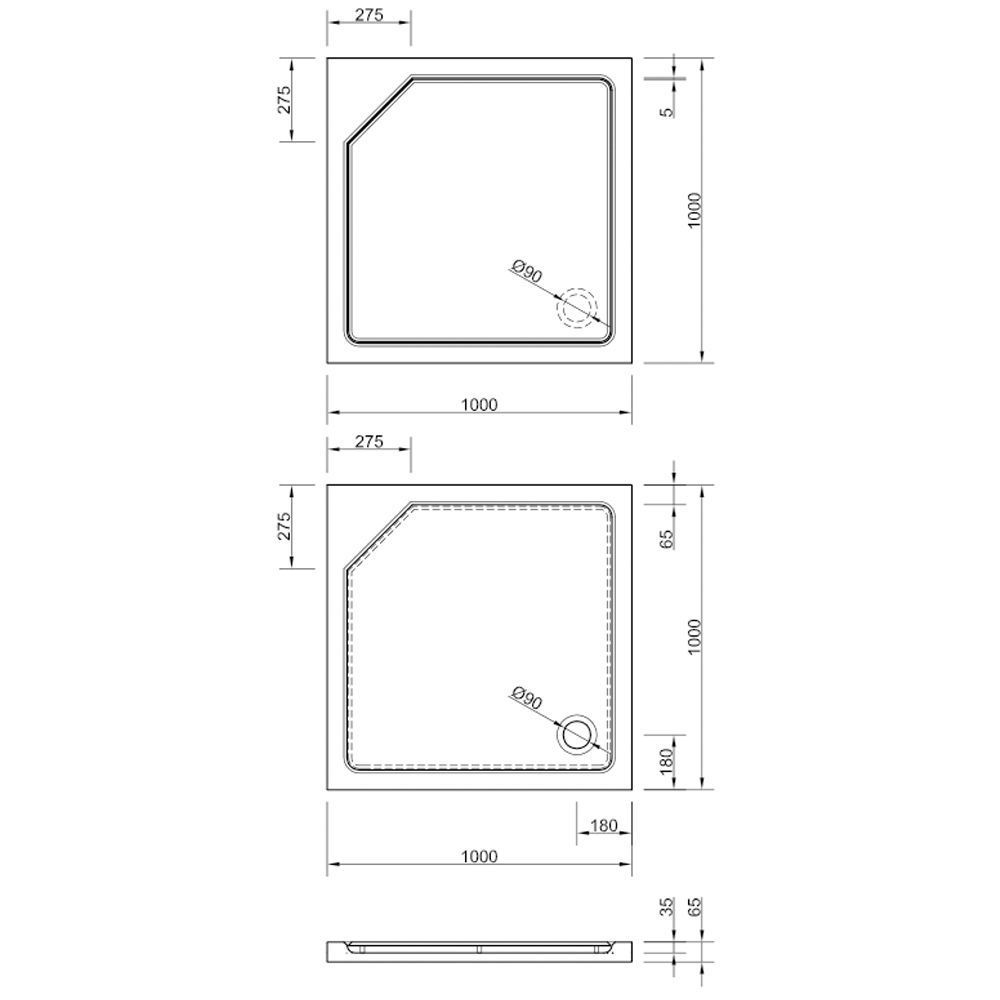 Mineralmarmor Duschwanne Kiel 100 x 100 Ablauf Einlegeboden Dusche Brausewanne