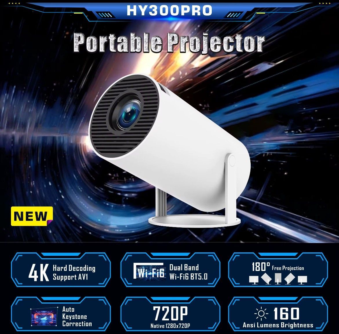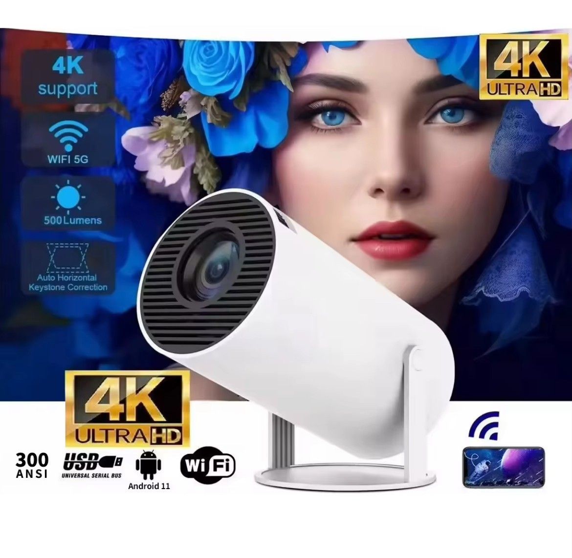 Mini Beamer 4K Support Android 11 WLAN Bluetooth 200? Heimkino Portable Projektor 720