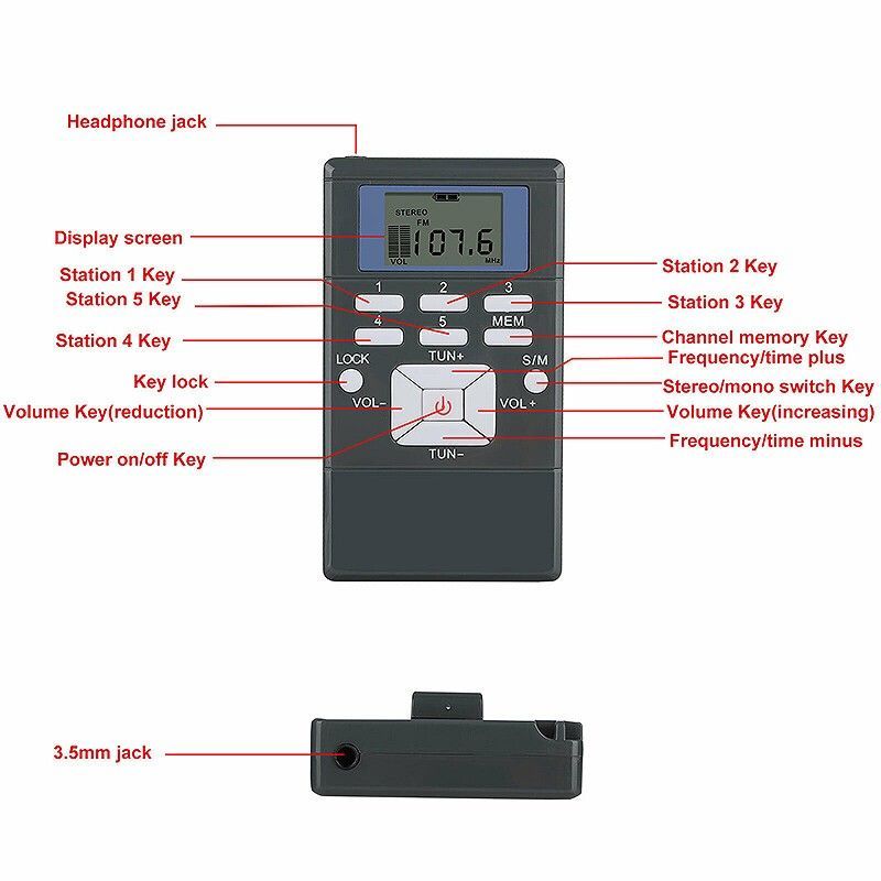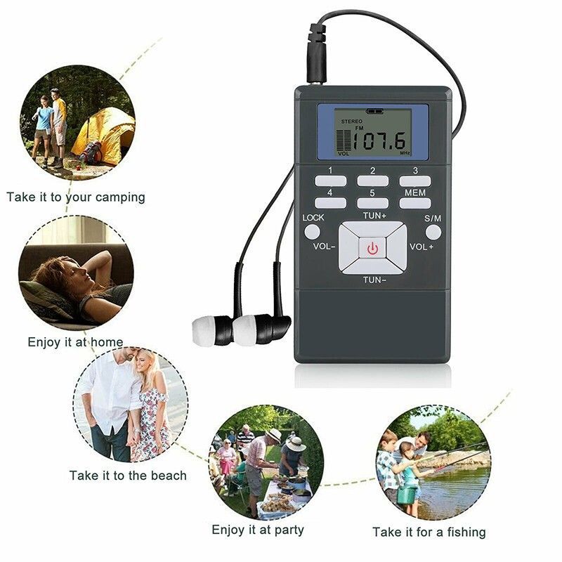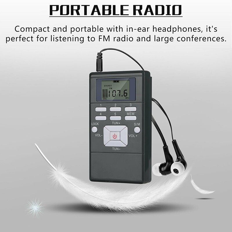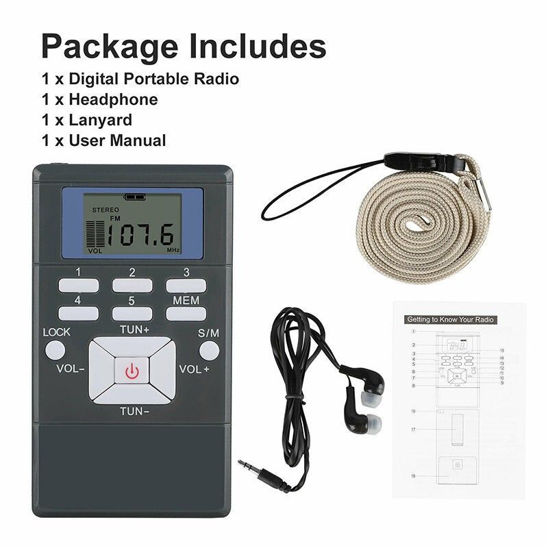 Product Description Mini FM Radio Taschenradio LC-Display Stereo Empfänger mit Kopfhörer Reiseradio Eigenschaften: 100% nagelneu und hohe Qualität. Hergestellt aus ABS-Kunststoffgehäuse mit feiner Verarbeitung, angenehmem Handgefühl und starker Absturzsicherheit. Klein und schlank, kann problemlos i