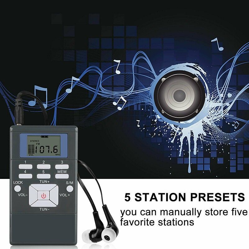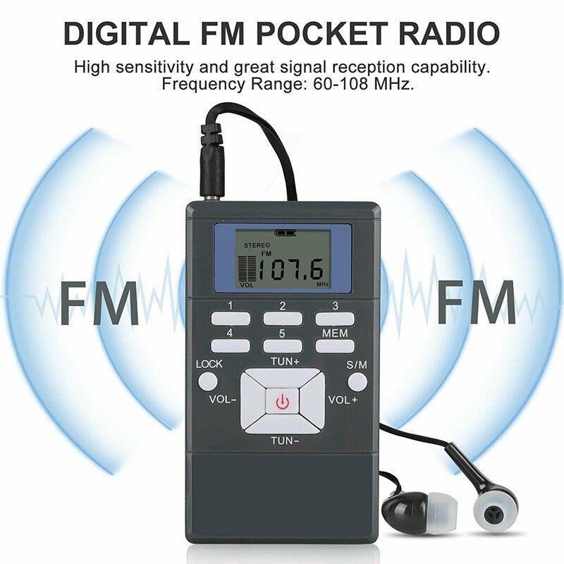 Mini FM Radio Taschenradio LC-Display Stereo Empfänger mit Kopfhörer Reiseradio