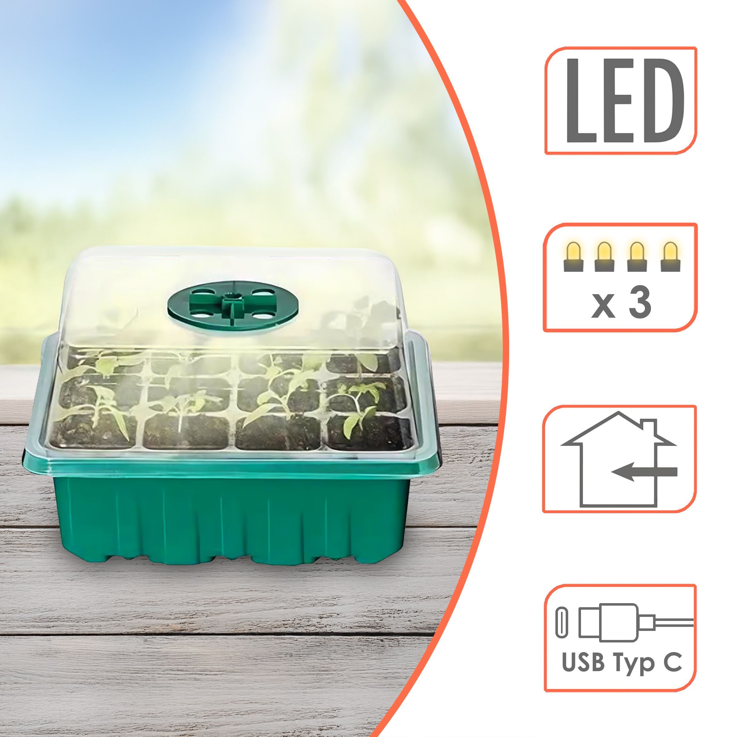 Mini Gewächshaus m. Beleuchtung 3er Set - Fensterbank Treibhaus Pflanzen Anzucht