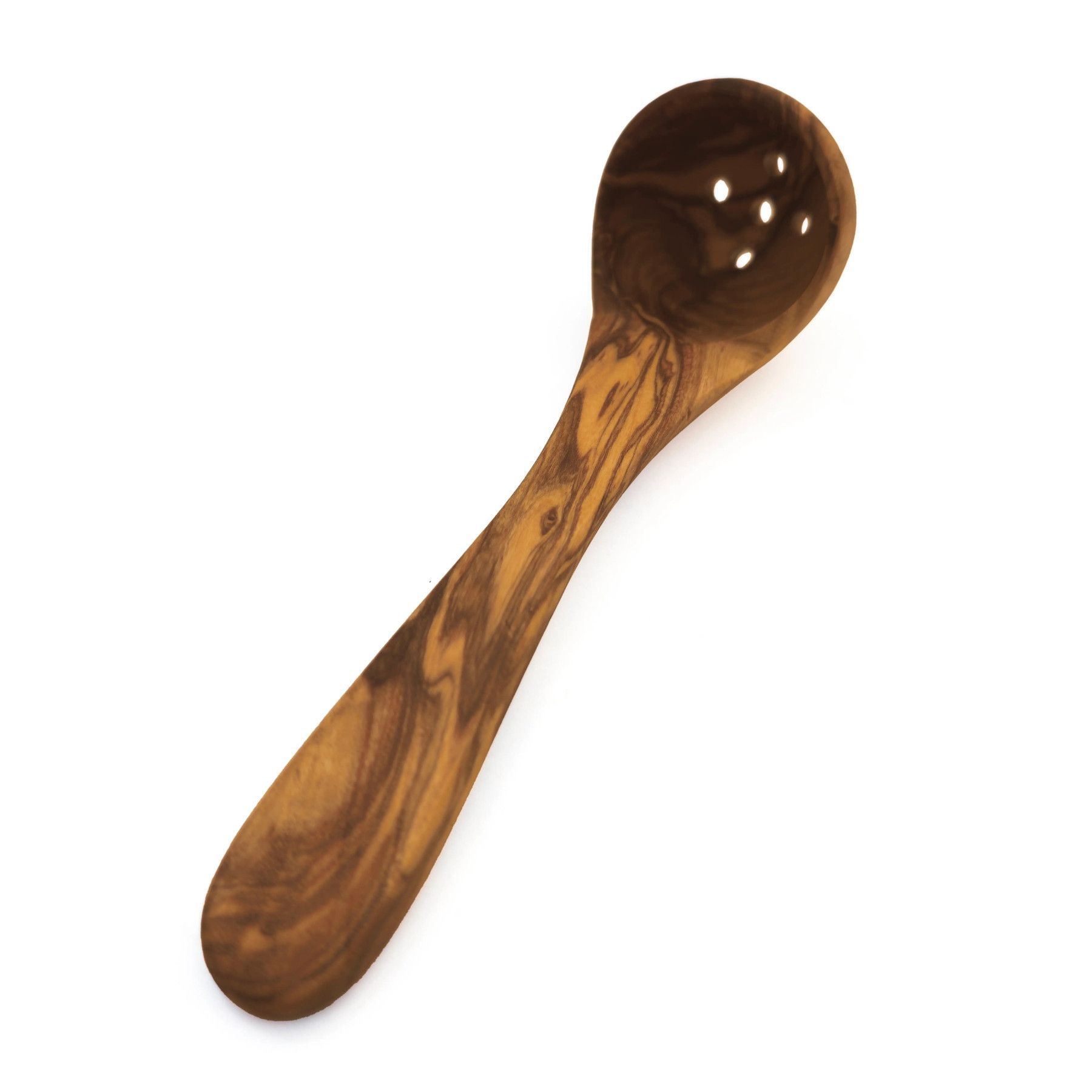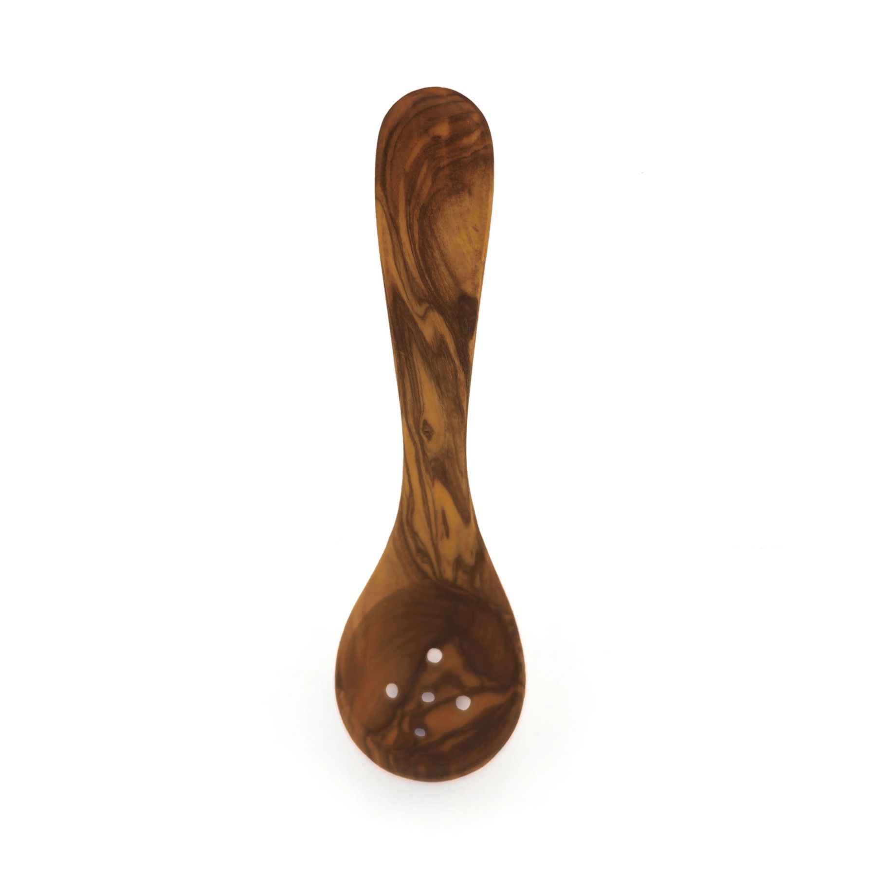 Mini Kelle mit 5 Löcher Länge 16 cm Olivenlöffel handgemacht aus Olivenholz