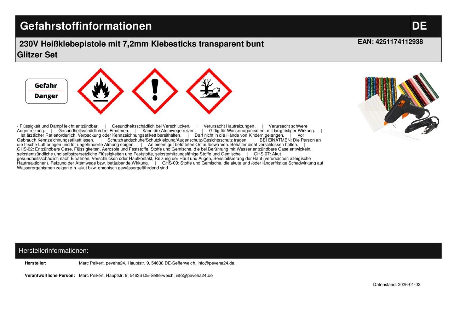 Mini Klebepistole 230V 7,2mm Klebestifte transparent bunt Glitzer Heißkleber Set