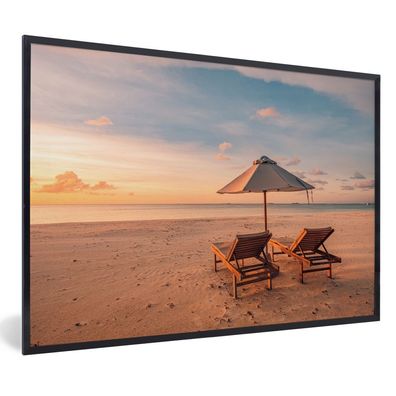Poster - 90x60 cm - Strand - Liegestuhl - Sonnenschirm