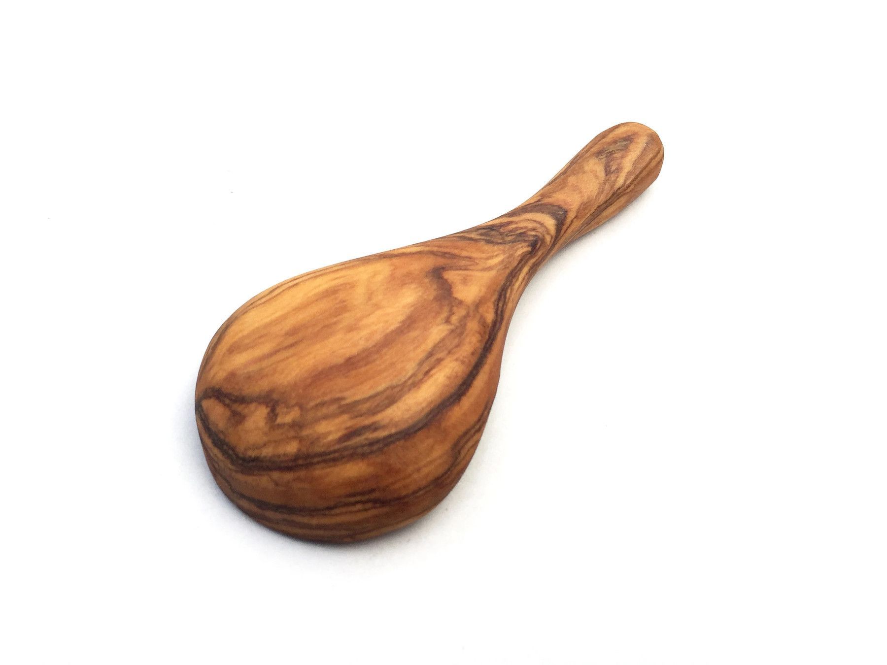 Mini Löffel 10 cm Der Mini Löffel aus Olivenholz und in Handarbeit angefertigt. Die künstlerisch begabten Handwerker haben jedes Stück einzeln per Hand hergestellt, was jedes Stück zu einem Unikat macht. Die einzigartige rötlich-braune Maserung mit einem unregelmäßigen Faserverlauf auf glatter Oberf