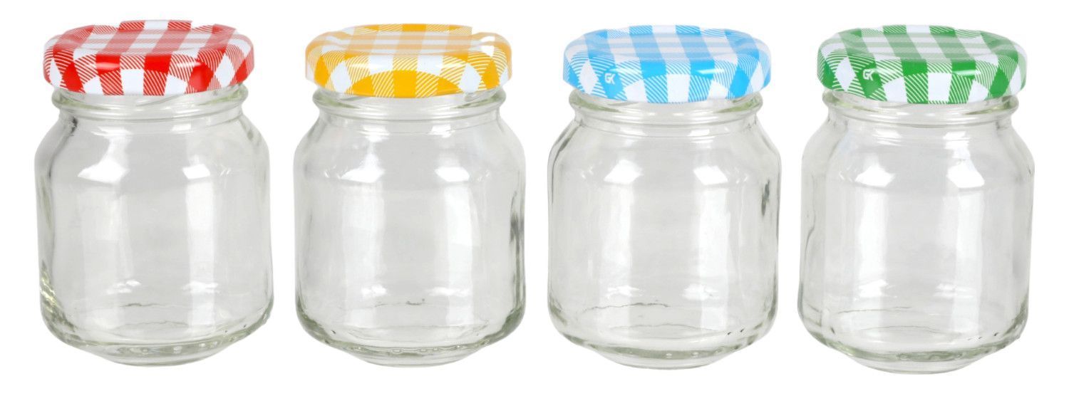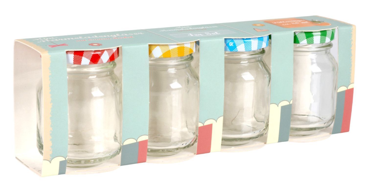 Mini-Marmeladengläser 4er-Set 70ml Gläschen Einmachglas Probiergläschen bunt
