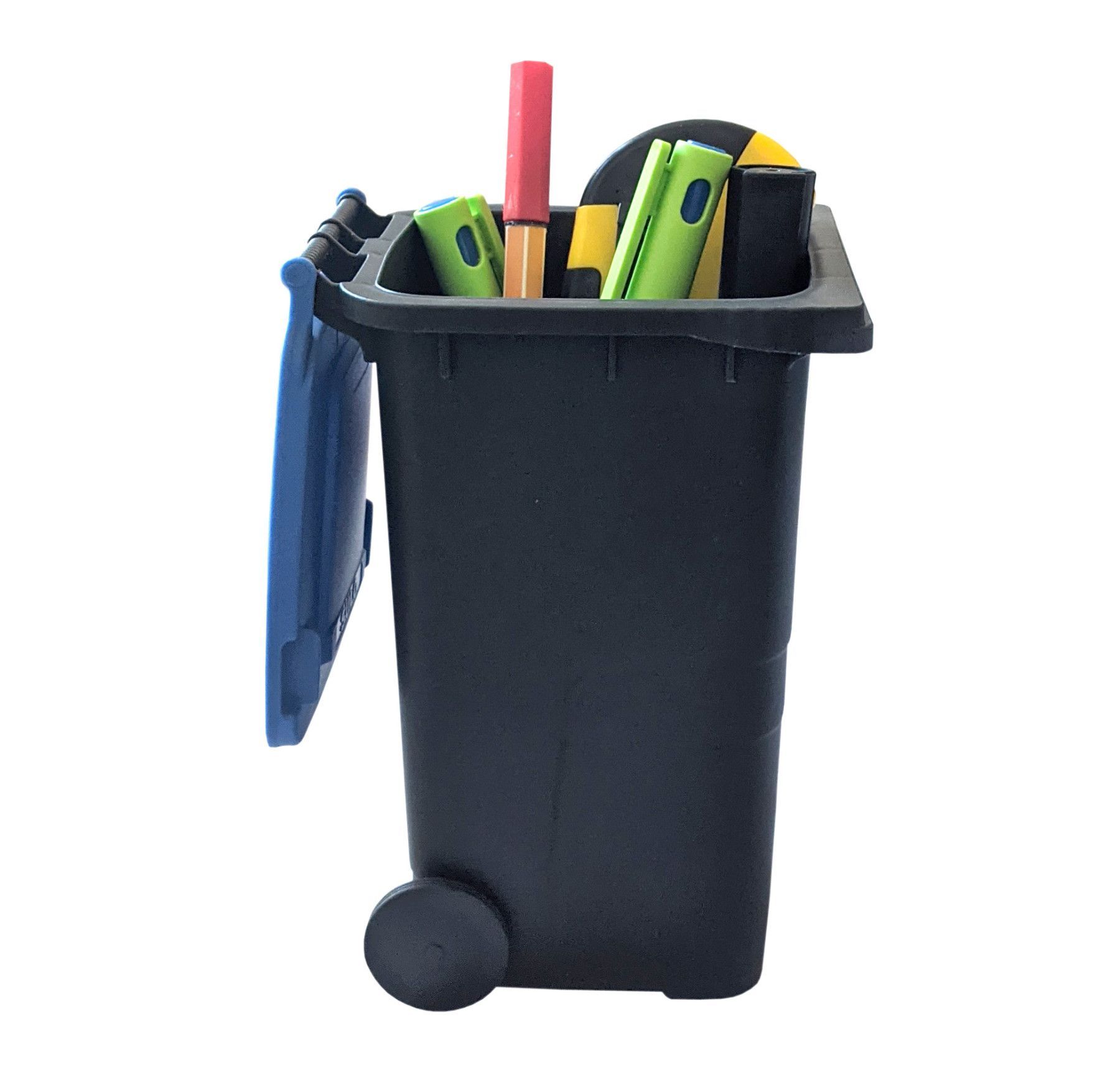 Sulo Mini Mülltonne grau mit Deckel blau Tischmülleimer Stiftehalter