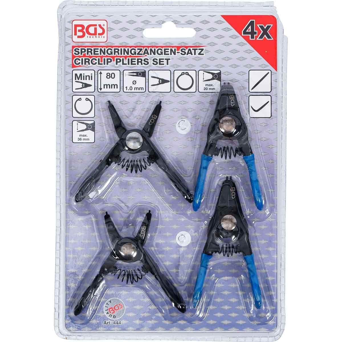 BGS Mini Sprengringzangen-Satz, Seegeringzangen für kleine Sprengringe, 80 mm, 4-tlg