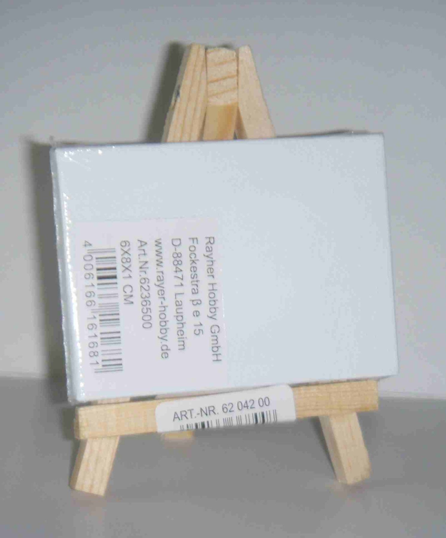Set besteht aus Holz-Staffelei, 11x7,5x0,7 cm und Keilrahmen, 6x8x1 cm Keilrahmen besteht aus 100% Baumwolle Gestalten Sie z.B. Ihre Namensschilder selbst und schaffen so ein bleibendes Andenken an Ihr rauschendes Fest.