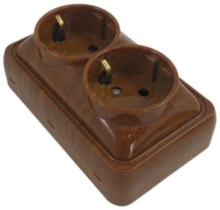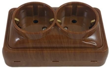 Mini Steckdose Aufputz 2-Fach SPIN, Aufputz-Montage, Doppelsteckdose, Schuko, Mahagon