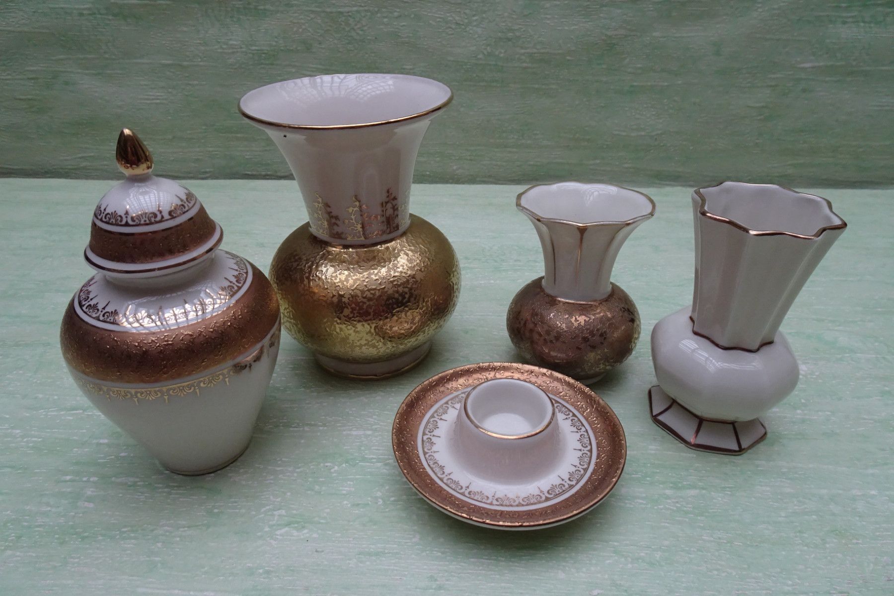 1: Kerzenleuchter, 2: Deckelvase Royal KM, 3: Alka, 4: Neu-Tettau und 5: Kronach
