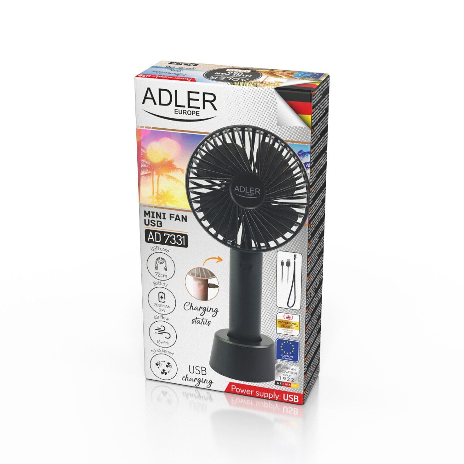 Adler Mini-Ventilator Luftkühler Mini Fan Kühler 9cm/3,5" USB 2000mAh tragbar schwarz