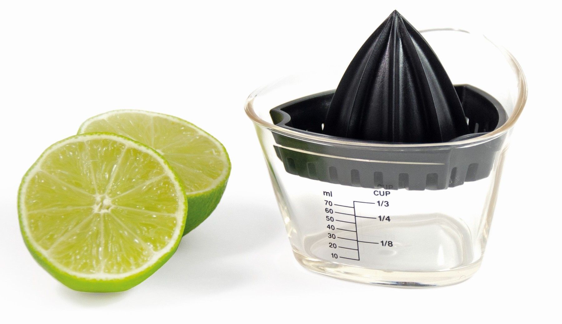 Homiez Mini-Zitruspresse für Zitrusfrüchte mit Behälter (75ml) für Limetten und co