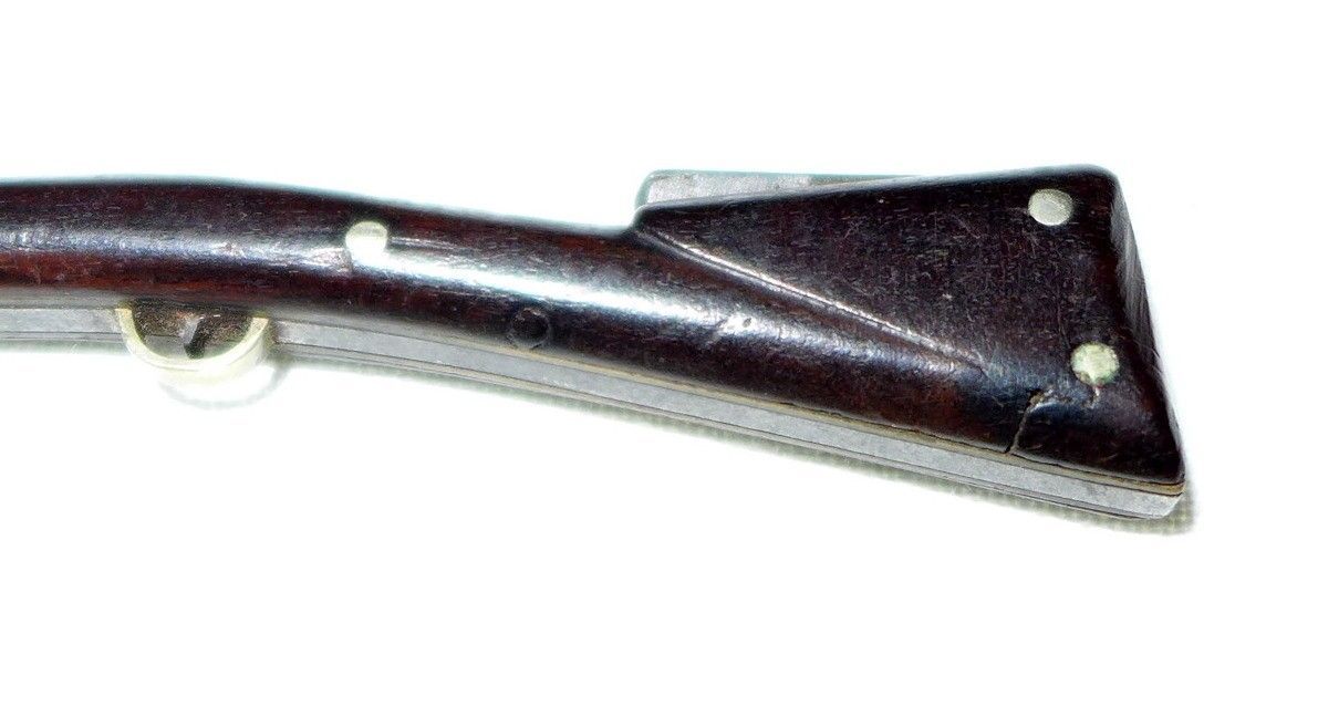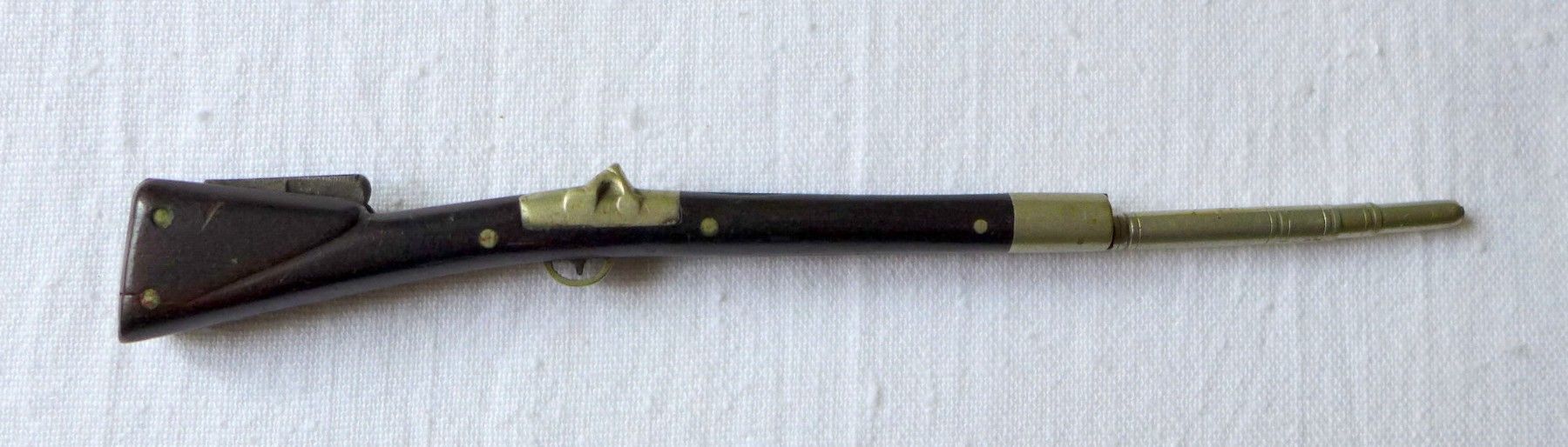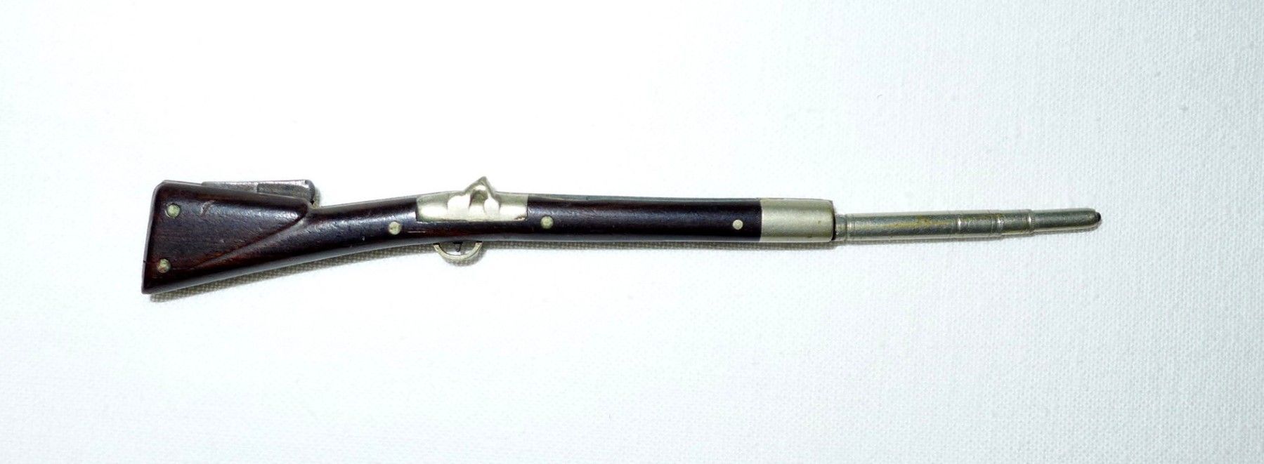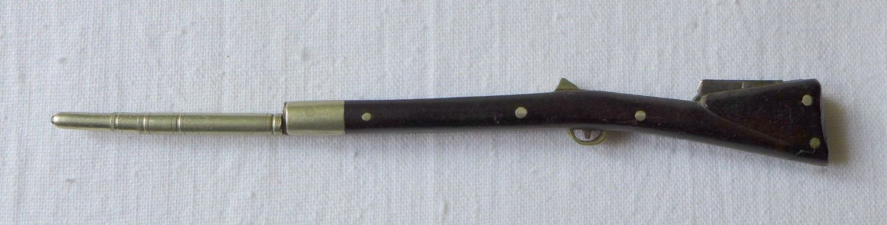gebrauchter Zustand bitte den Bildern entnehmen , Gebrauchs - und Lagerspuren siehe Fotos , alt , antik , keine Neuware , der Lauf ( Bleistift ) ist einklappbar und aufschraubbar , die im Schaft befindliche Klinge ist gekürzt bzw. mal abgebrochen , Lichtspiegelungen , Schattenbildung , Farbabweichun