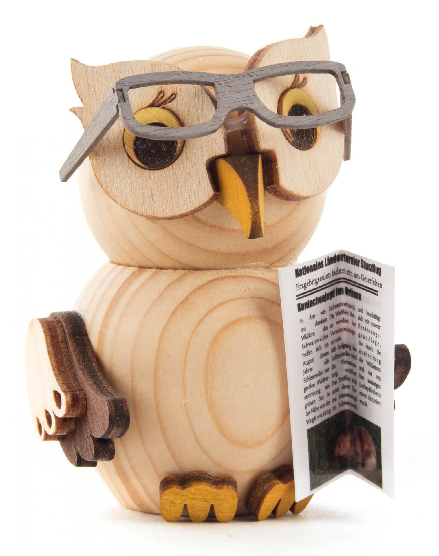 Miniatur Mini-Eule mit Brille H=7,5cm NEU Holzfigur Holzminiatur Sammelfigur