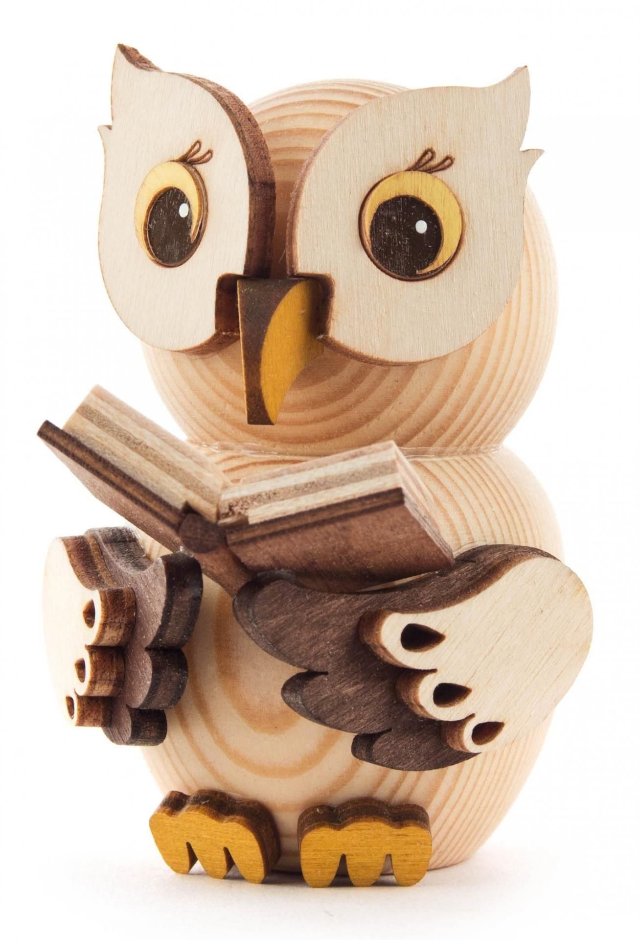 Miniatur Mini-Eule mit Buch H=7,5cm NEU Holzfigur Holzminiatur Sammelfigur Holz