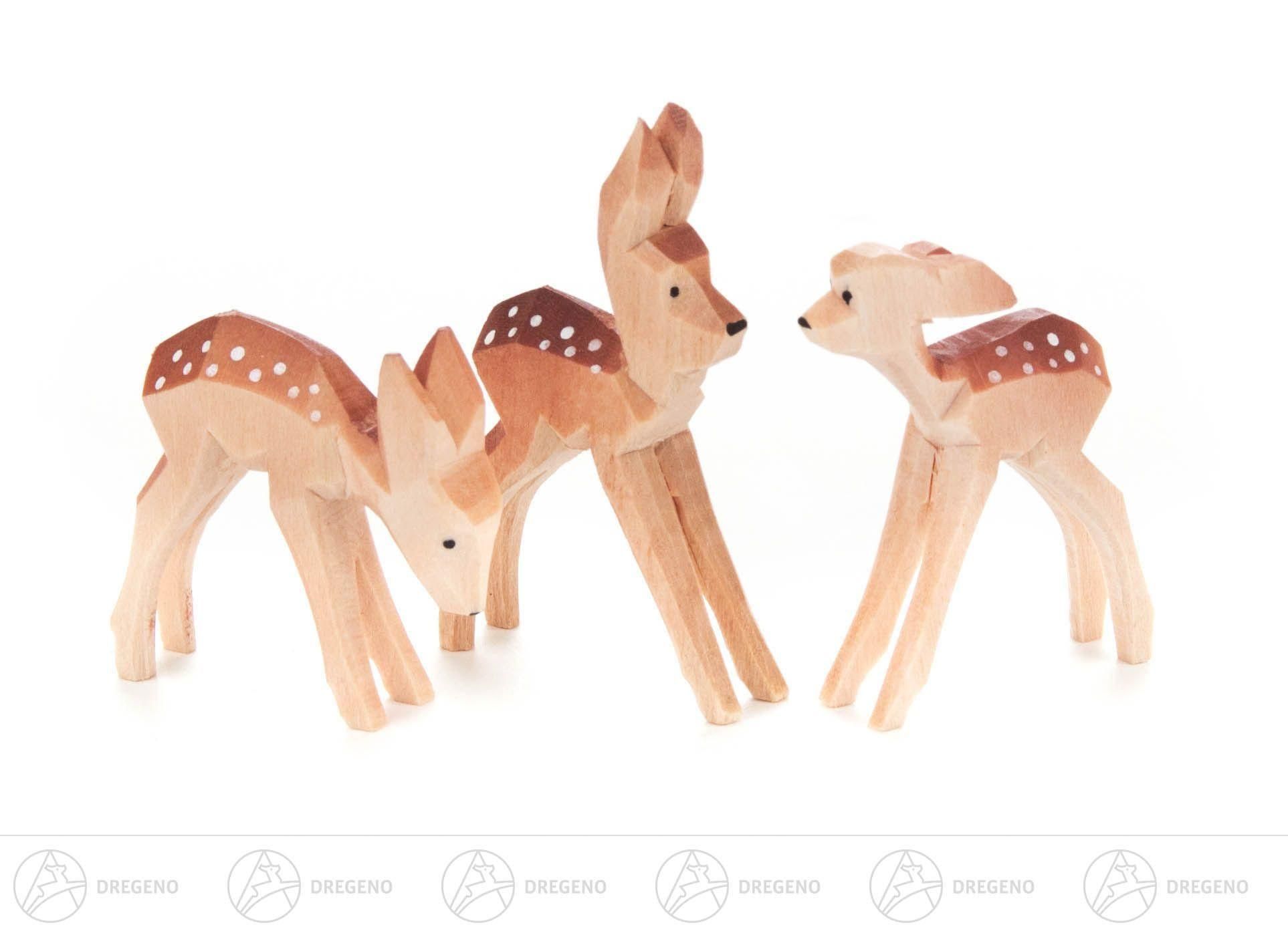 Miniatur Rehkitze geschnitzt (3) H=ca 4,5 cm NEU Erzgebirge Weihnachtsfigur
