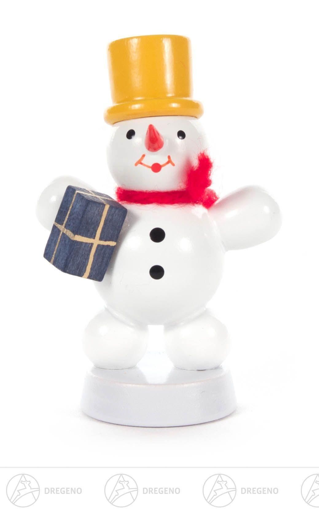 Miniatur Schneemann mit Päckchen H=ca 6 cm NEU Erzgebirge Weihnachtsfigur