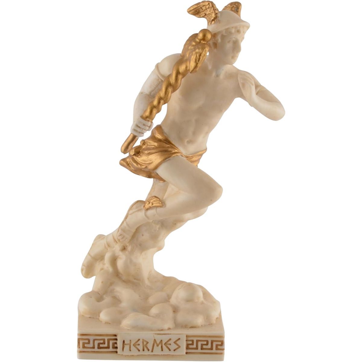 Miniatur weiß-gold Hermes, griechischer Schutzgott des Verkehrs und der Reisenden mit