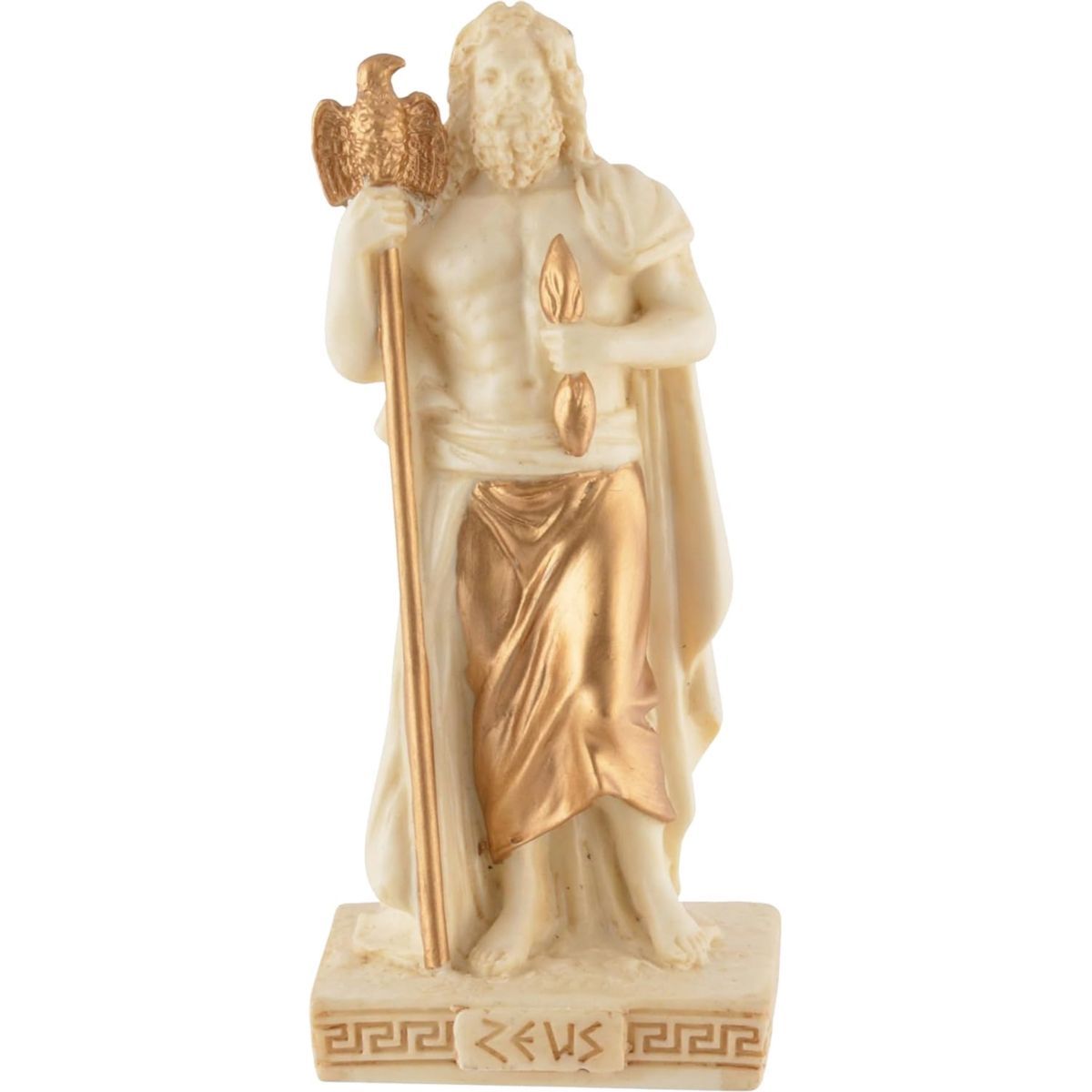 Miniatur weiß-gold Zeus, oberster Gott der griechischen Mythologie, Stab in der einen