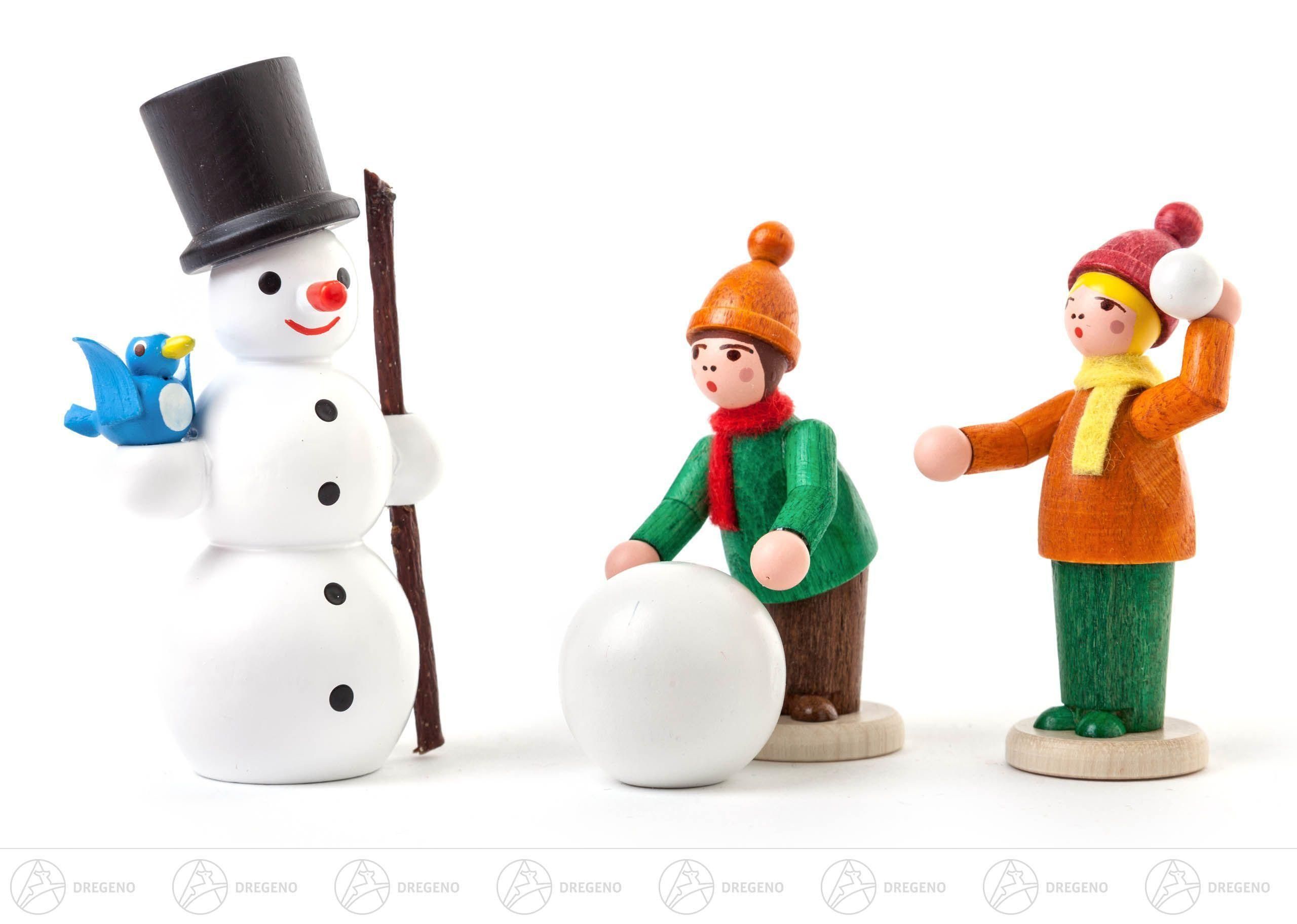 Miniatur Winterkinder farbig lasiert mit Schneemann (3) H=7,5 cm NEU Erzgebirge