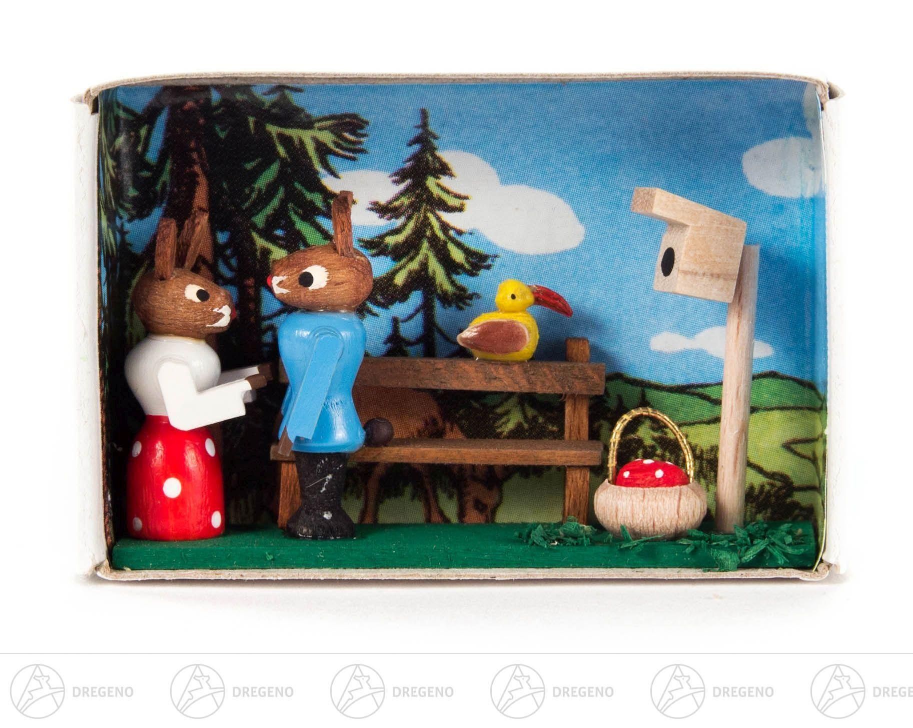 Miniatur Zündholzschachtel Hasenpaar B= x H=ca 5,5 cmx4 cm NEU Erzgebirge