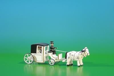 Miniaturen Brautkutsche geschlossen weiß BxH 11x4cm NEU Miniaturgespann Gespann F