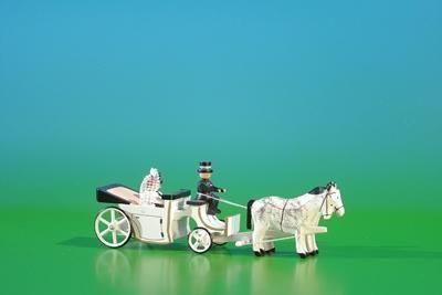 Miniaturen Brautkutsche offen weiß BxH 11x4cm NEU Miniaturgespann Gespann Fahrzeu