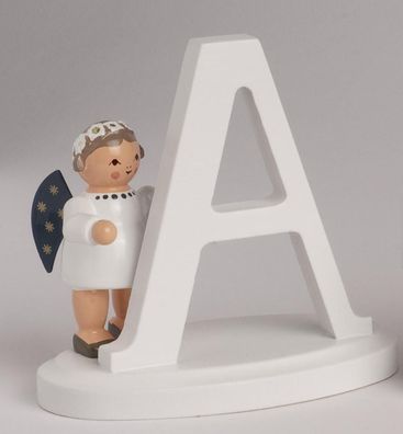 • Miniaturfigur Engel mit Buchstabe "A" BxTxH= 7x4x7cm NEU Holzfigur Winter