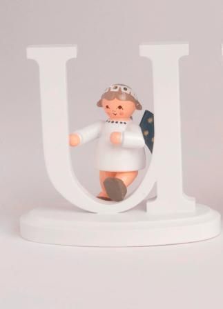 Miniaturfigur Engel mit Buchstabe "U" BxTxH= 7x5,5x7cm NEU Holzfigur Winter
