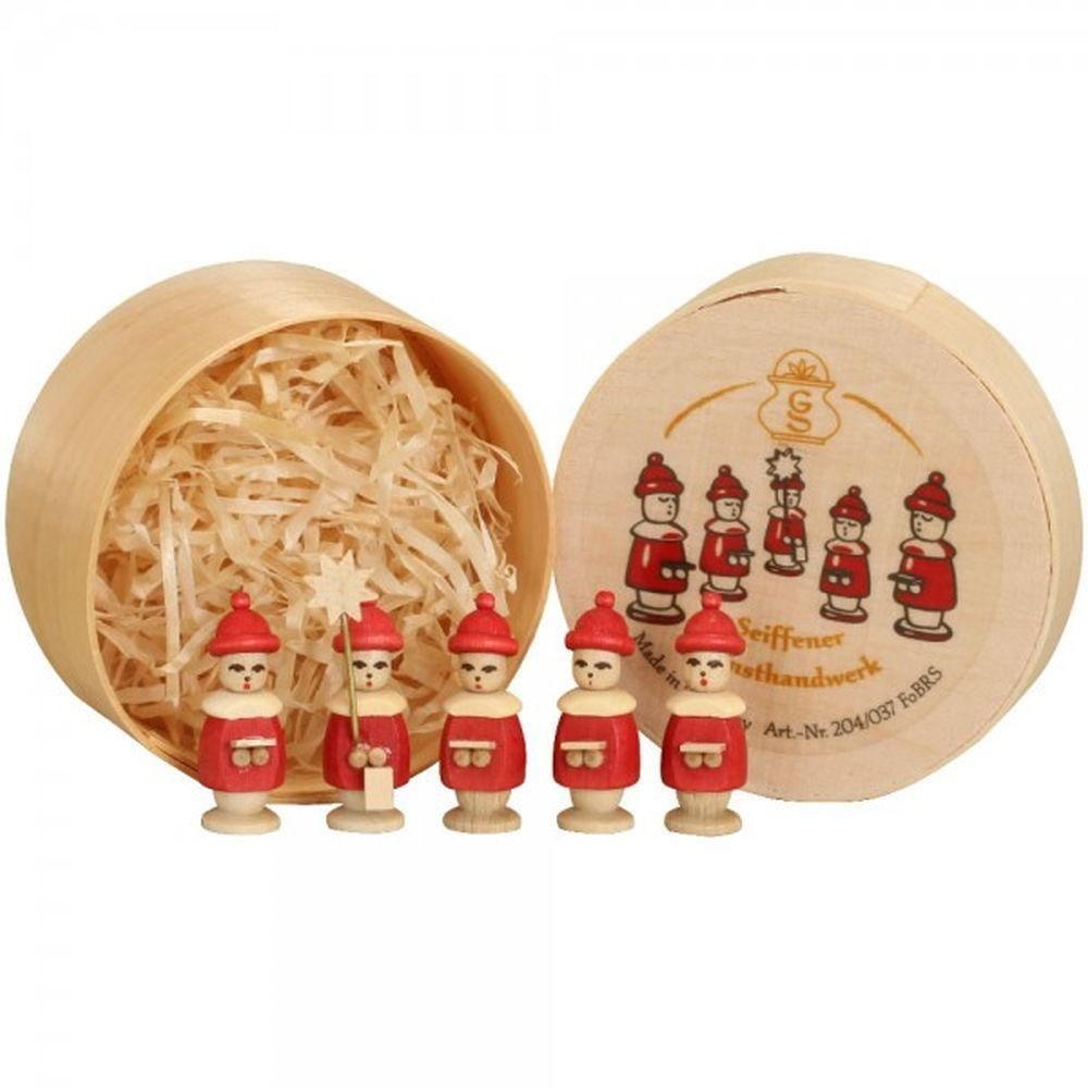 Miniaturfigur Spanschachtel mit 5 Kurrendefiguren rot Höhe 3,2 cm NEU Spielzeug