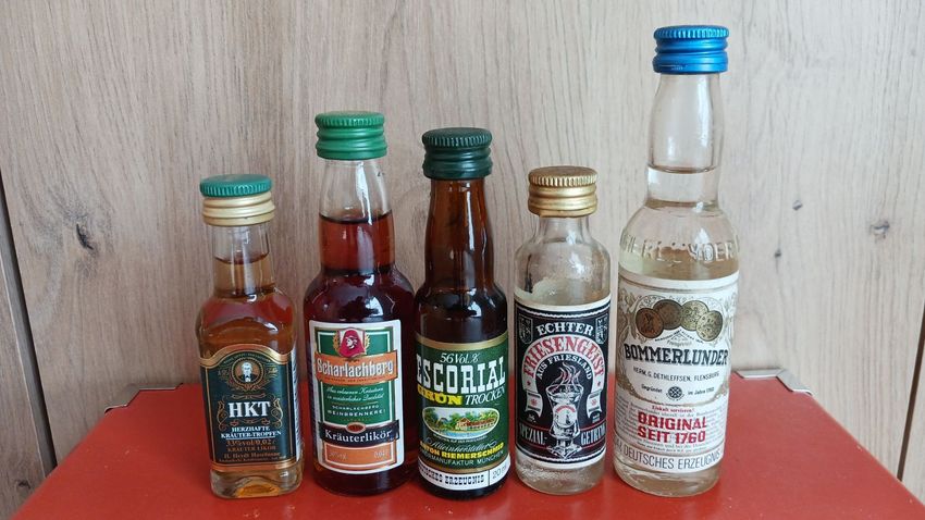 Verkauf: Kleine Spiritiosenflaschen etwas eingestaubt teilweise ist Alkohol verdunstet aber alle ungeöffnet. Bitte bei der Bestellung die Bildnummer und die Flaschen von links angeben. Aufgrund des Alters ist jede Garantie auf die Trinkbarkeit des Inhaltes ausgeschlossen. Der Preis bezieht sich auf