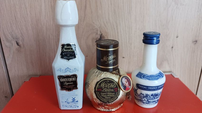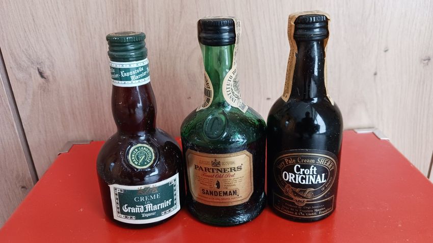 Verkauf: Kleine Spiritiosenflaschen etwas eingestaubt teilweise ist Alkohol verdunstet aber alle ungeöffnet. Bitte bei der Bestellung die Bildnummer und die Flaschen von links angeben. Aufgrund des Alters ist jede Garantie auf die Trinkbarkeit des Inhaltes ausgeschlossen. Der Preis bezieht sich auf
