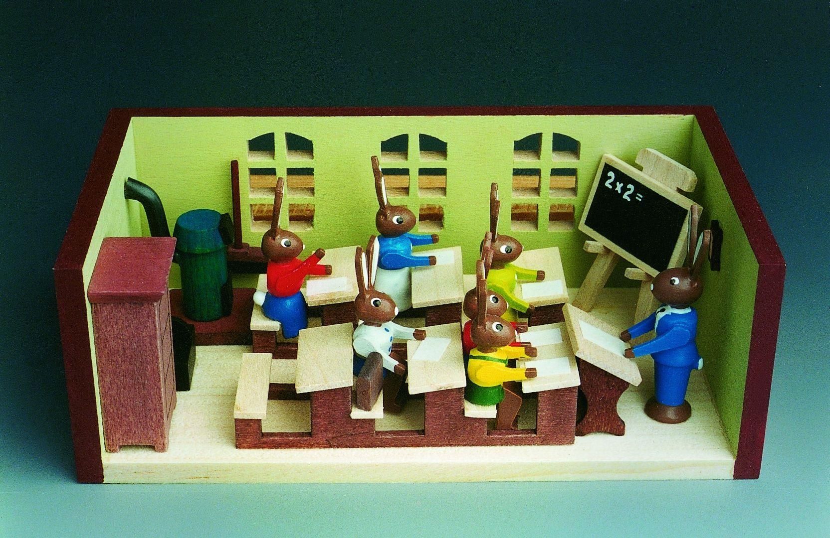Miniaturstube Klassenzimmer mit Hasenlehrer BxHxT 11x4x6 cm NEU Seiffen Miniatur
