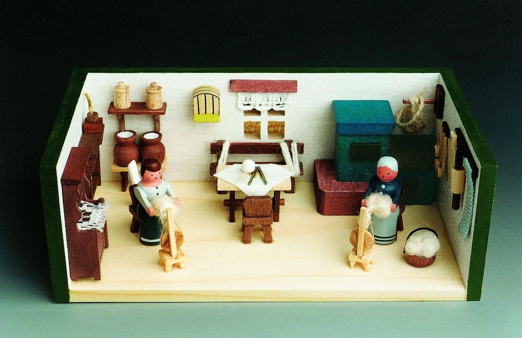 Miniaturstube Spinnstube BxHxT 11x4x6 cm NEU Seiffen Miniatur Stube Kästchen