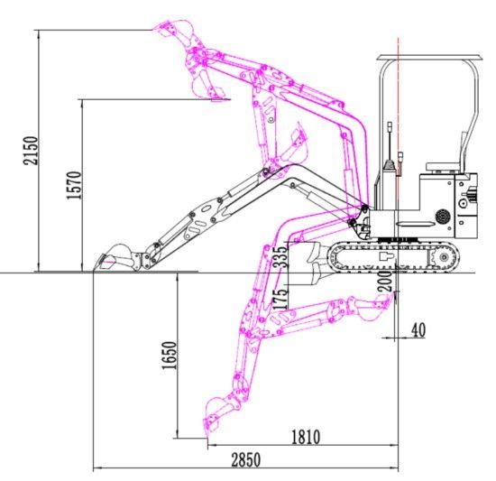 Minibagger HZC Power DKB881, Diesel, 920 Kg, Arm schwenkbar, rot