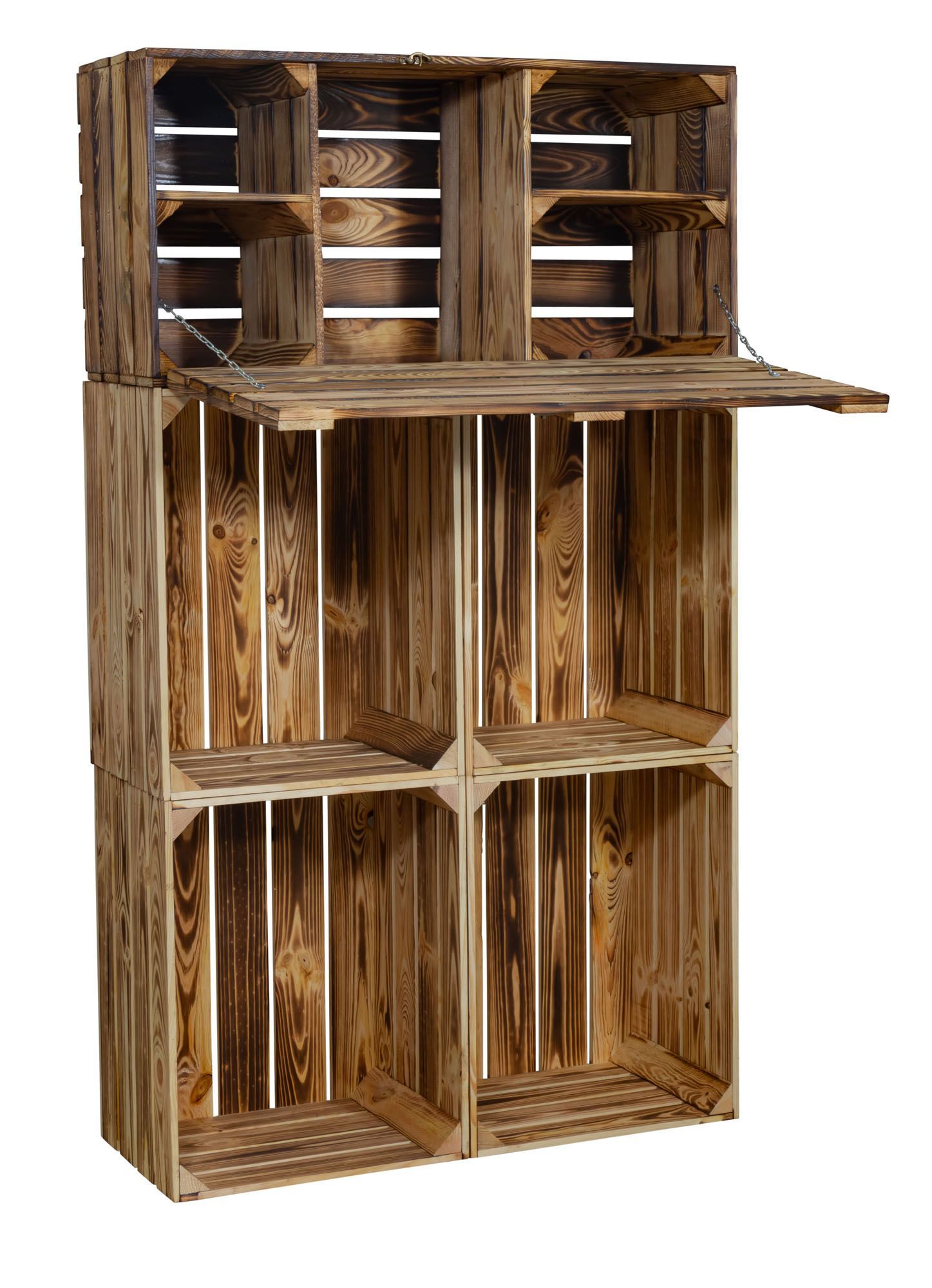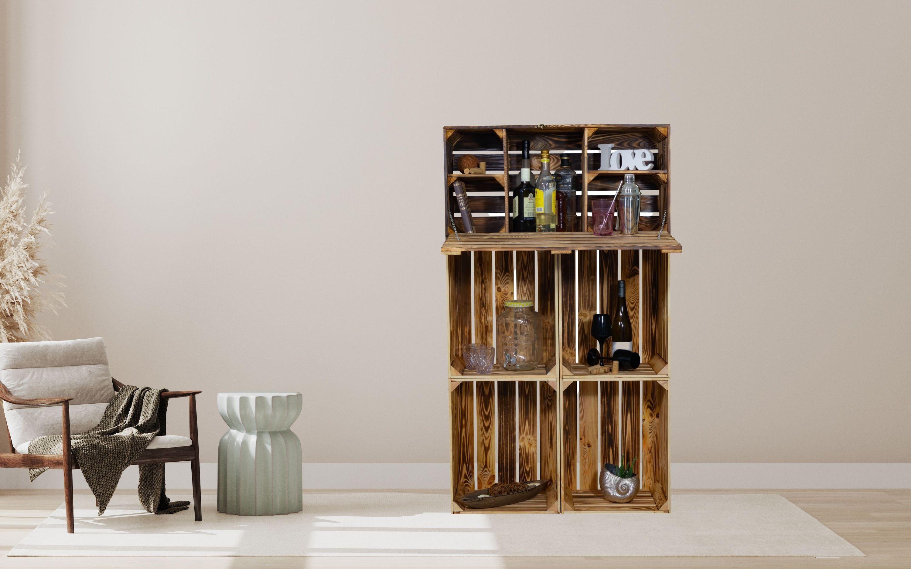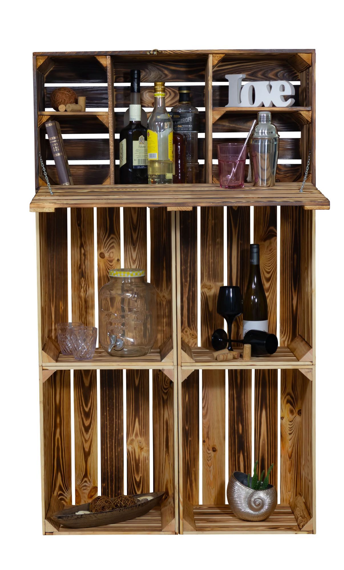 Minibar "Daniel" mit Klappfunktion und Flaschenregal (Geflammt)