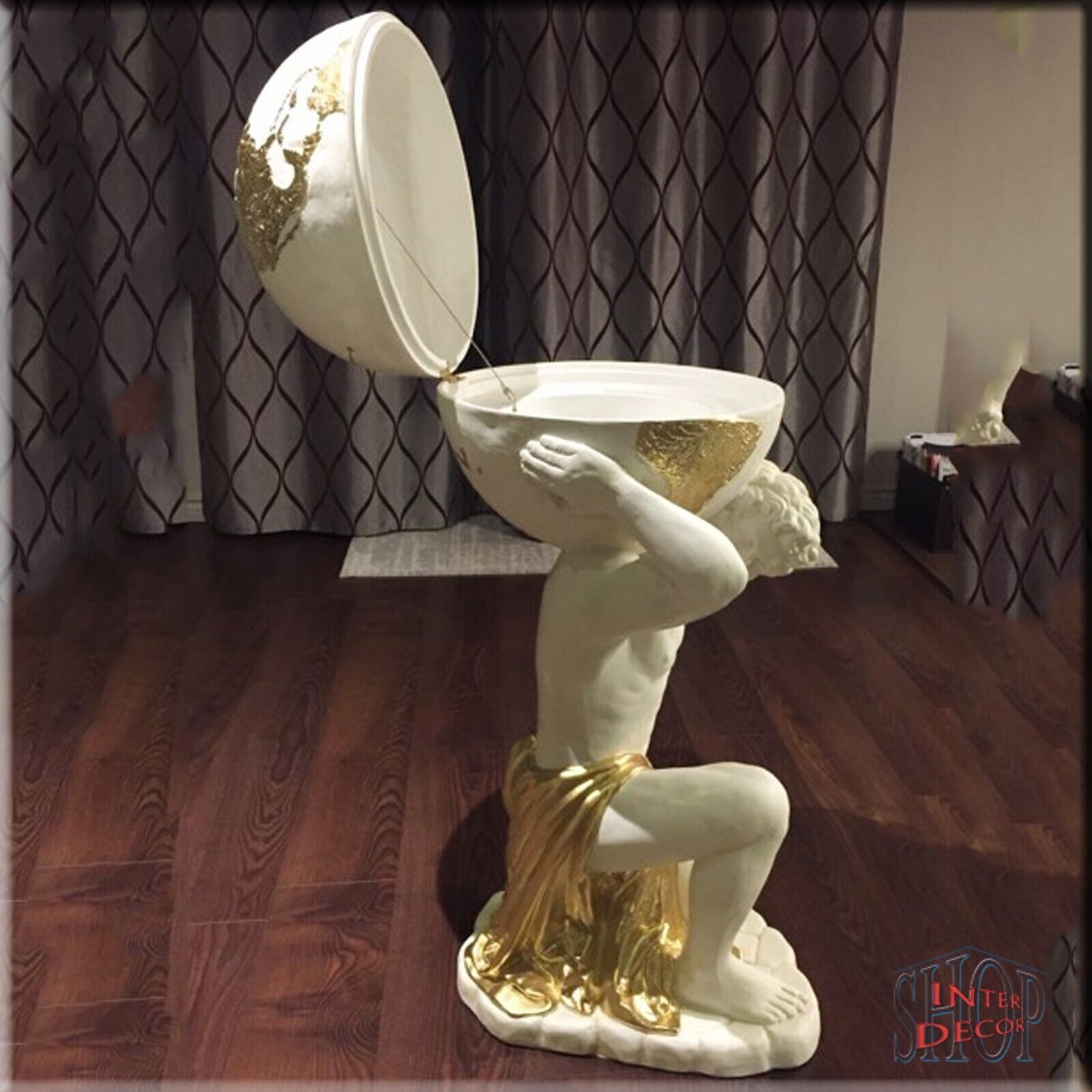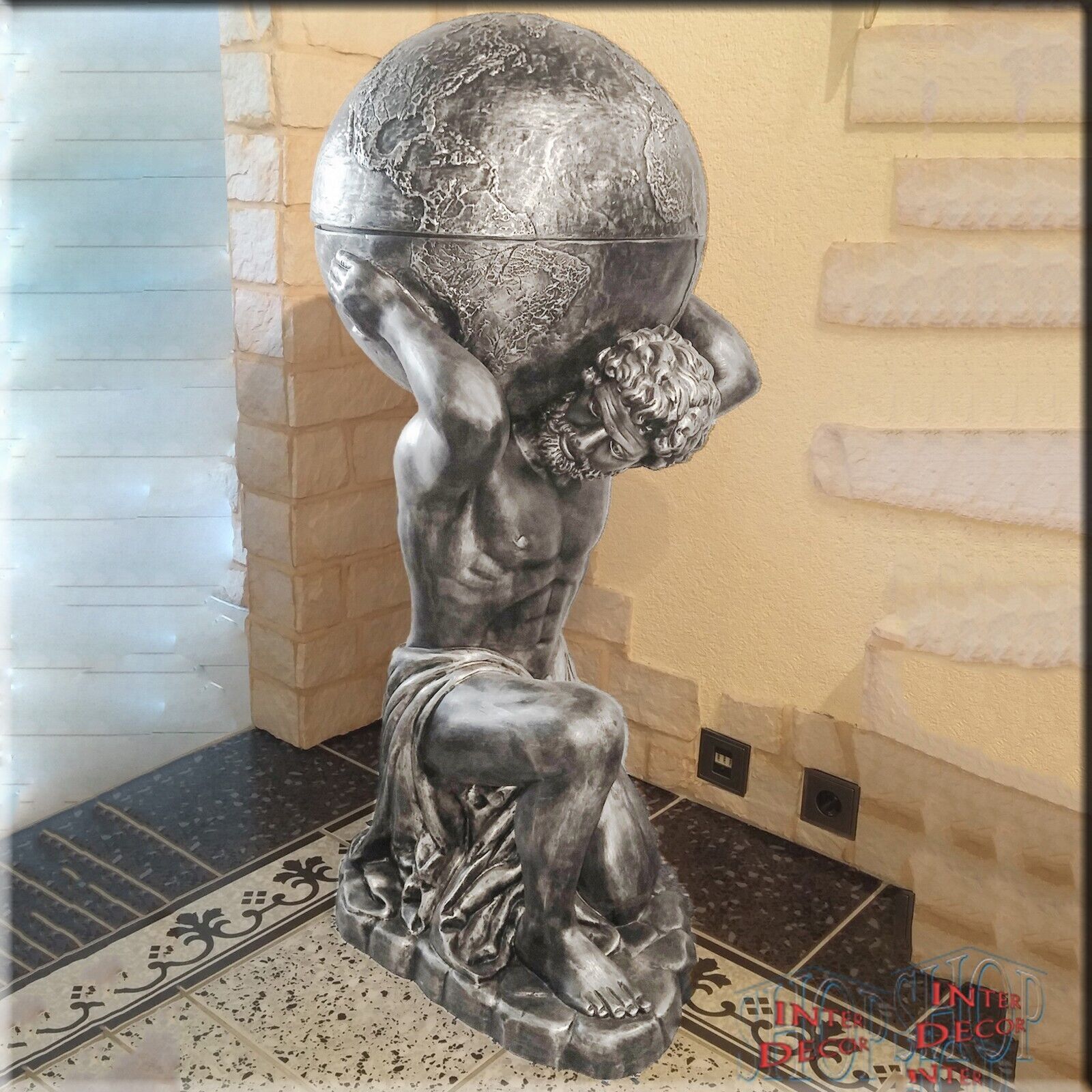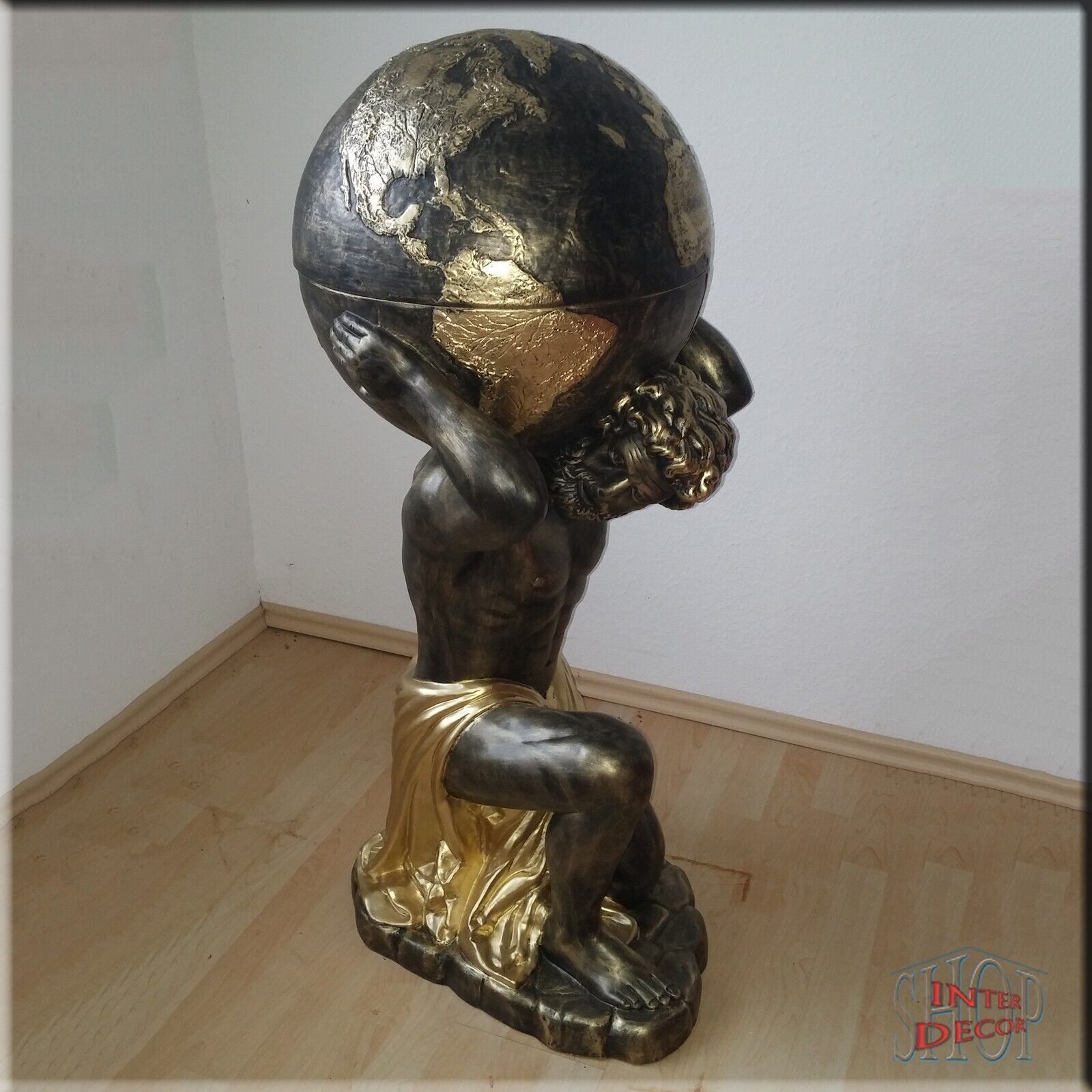 Minibar Regal ATLAS Globus Globusbar Welt Griechischer Bar Skulptur Figur Dunkel