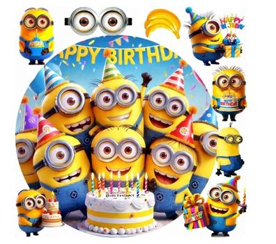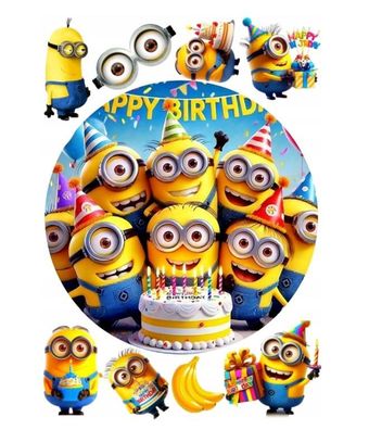 • Minions Essbar Gelbe Wesen Zuckermasse Tortenbild Tortenaufleger + 4 Muffin m02
