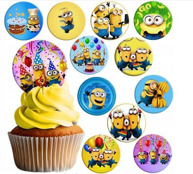 • Minions Gelbe Wesen Essbar 12 Muffin Zuckermasse Tortenbild Tortenaufleger