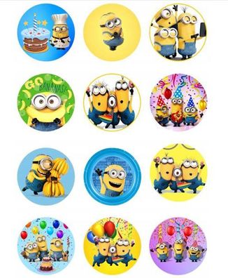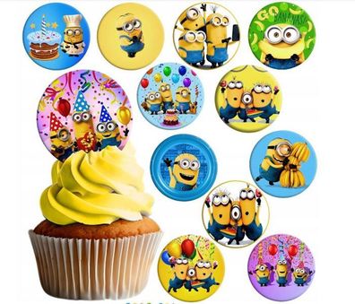 • Minions Essbar 12 Muffin Zuckermasse Tortenbild Tortenaufleger