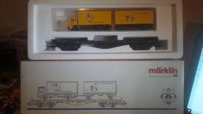 • Märklin 84668 PMS 63-06 Postmuseumswagen 1995 Flachwagen mit Wiking Postkofferlastzug